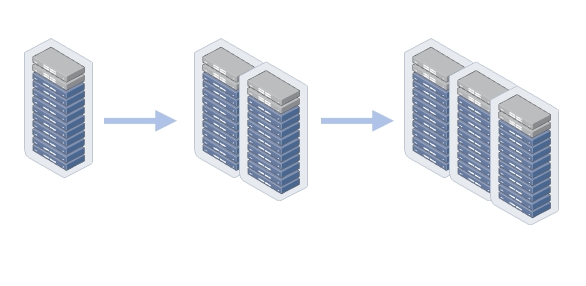 Scale Out은 Scale Up과는 반대로 수평적인 확장을 의미합니다. 서버 자체의 성능을 향상시키는 방법이 아닌 서버의 대수를 늘려서 성능을 향상시키는 방법입니다.